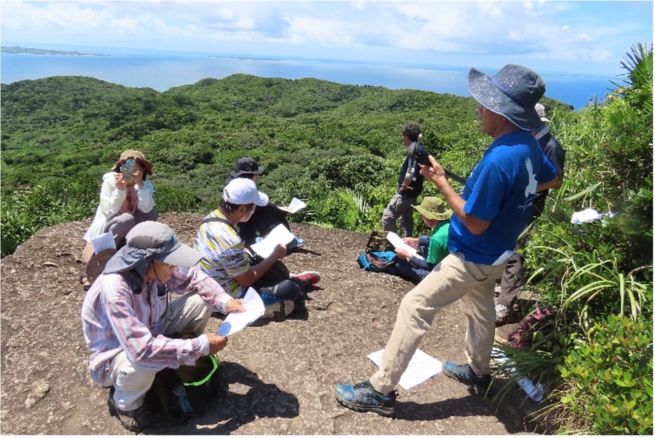 終了事業・活動報告(R7年度) 屋良部岳登山-2025/08/11 ishi-sei 2025年8月11日 2025年(令和7年)8月11日 屋良部岳登山 登山道での植物のしおりも素晴らしかった。登山道での植物のしおりも素晴らしかった 又山頂での三線・民謡を歌ったのも良かった。 などなど参加者のお声を頂きました。山の日の登山で、山上で皆さんと楽しいひと時を過ごせました。 ★日 時:令和7年8月11日(月曜) 午前10時~15時 ★場 所:屋良部岳、御神崎 ★参加人数:5名+スタッフ6名